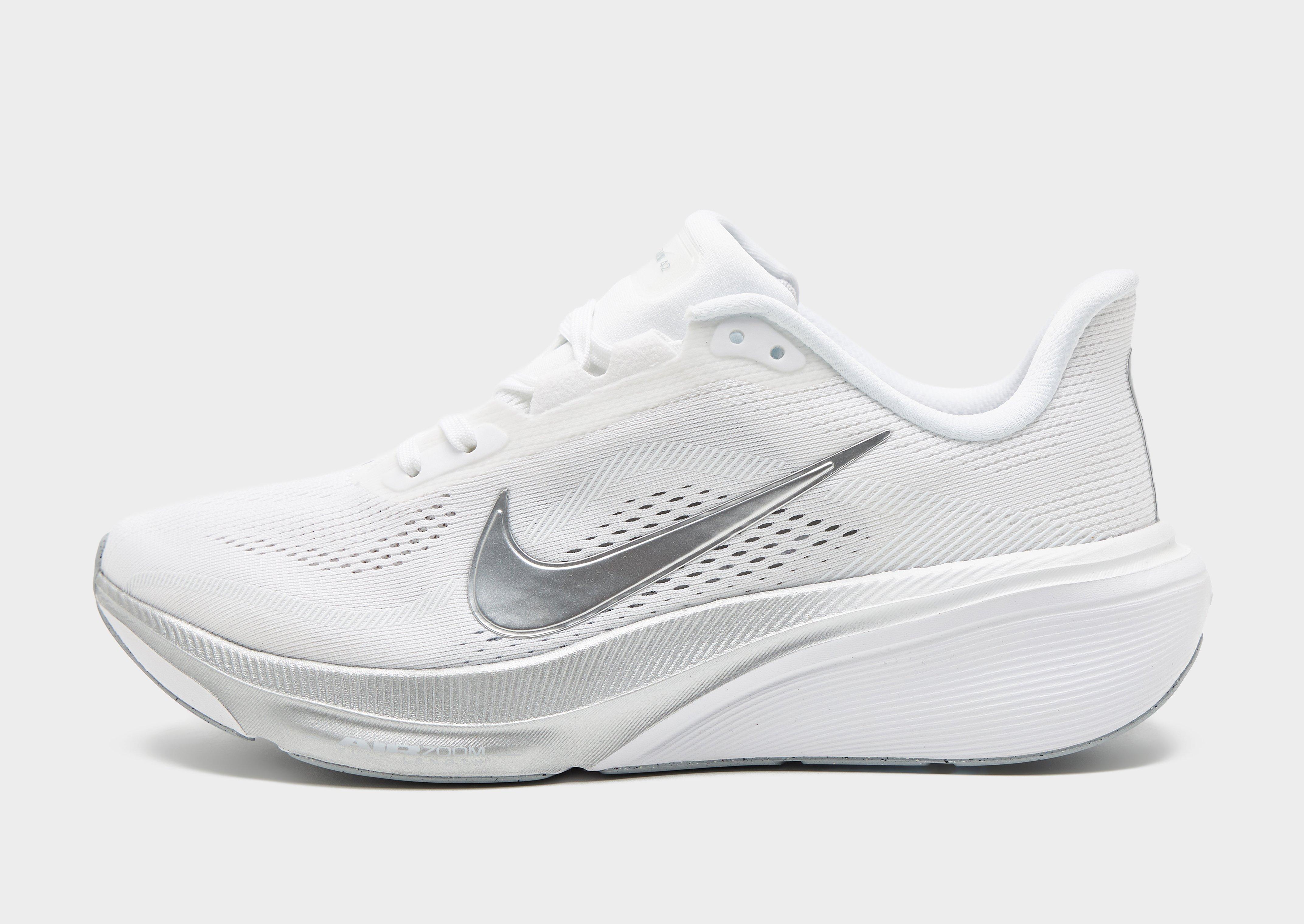 The best Pegasus ever made, now for women - the women's Nike Pegasus 42 in white with silver details is the latest evolution of Nike's best-selling road running shoe with 15% greater energy return than its predecessor. A curved, full-length Air Zoom unit delivers a propulsive feel from heel to toe-off, while a ReactX foam midsole provides responsive cushioning that's 13% more reactive than previous React technology. The lightweight mesh upper is softer and more breathable than earlier iterations, and the clean white colourway makes these women's Nike Pegasus 42 shoes impossible to miss on any run.