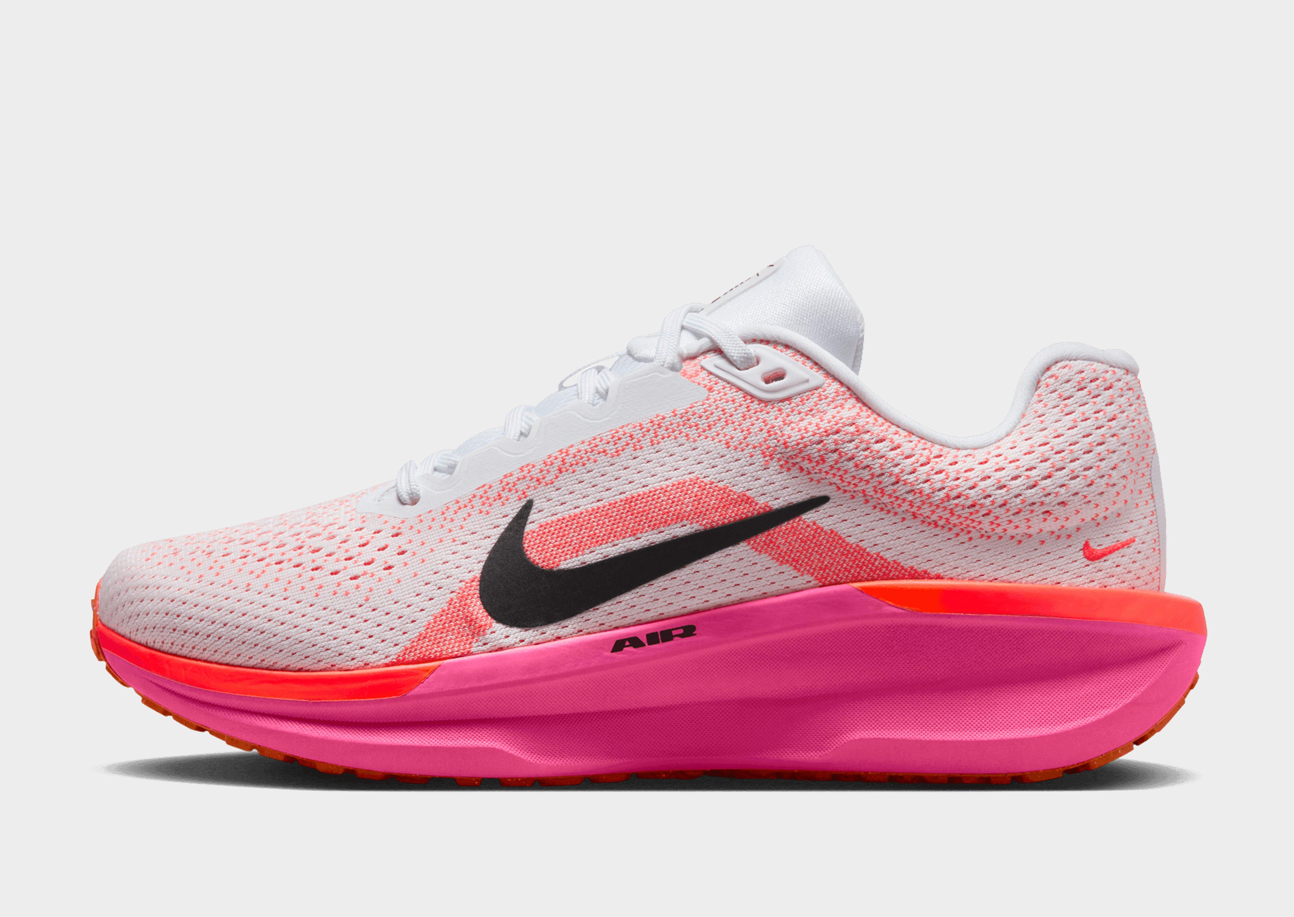 Push your training with these women's Winflo 11 trainers from Nike. In a White colourway with Black details, these running kicks have a lightweight and breathable mesh upper for a lasting wear. They feature a lace fastening with an elastic midfoot band to lock you in, as well as a low-cut padded ankle for support. Underfoot, a Cushion 3.0 foam midsole combines with a full-length Nike Air unit for a smooth ride, with a rubber outsole for traction. Signed off with the Swoosh to the sidewalls. Style Code: FJ9510-111