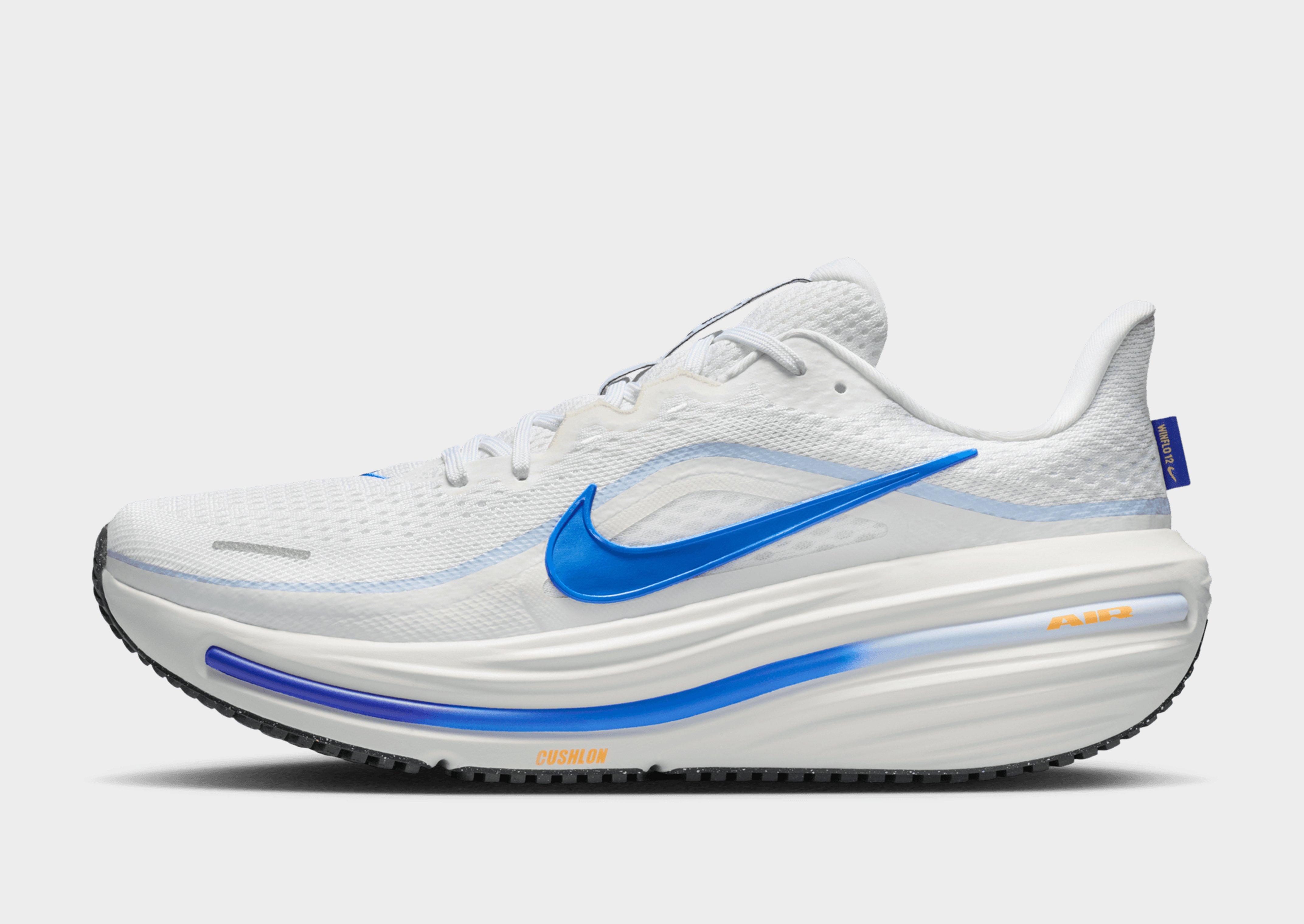 Run further, feel better - the men's Nike Winflo 12 in white with blue details combines a Nike Air unit with an increased Cushlon 3.0 foam stack for a balanced, energised ride on the road. The open-hole mesh upper delivers optimal breathability, keeping feet cool and comfortable across every kilometre, while the accommodating fit ensures a locked-in feel without restriction. At approximately 322g with a 10mm drop, this men's Nike performance running shoe delivers a smooth, reliable daily training experience from first step to last. A go-to everyday road runner for men who want dependable cushioning and comfort.