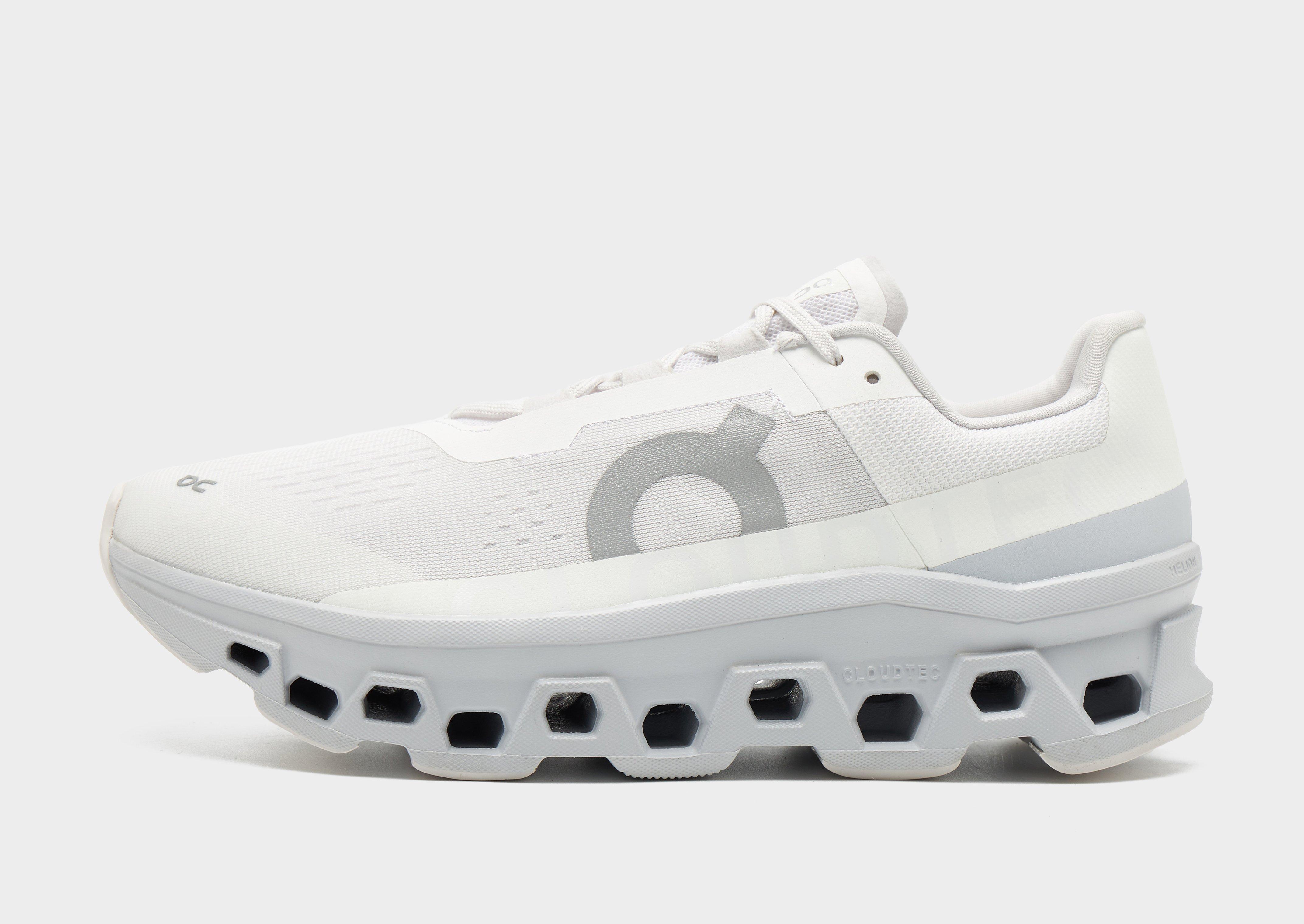 Go for miles with these men's Cloudmonster sneakers from On Running. In a White colourway with Grey details, these runners are cut from light, durable textile and synthetic in the upper for a breathable feel and lasting wear. They feature a lace fastening to keep you locked in, with a padded collar for added support and a soft sockliner for a snug fit. Underfoot, they sit on a spongy Cloudtec midsole for a smooth ride, with a grippy outsole for traction and Speedboard that propels you forward. Signed off with signature On Running branding to the tongue, heel and sidewalls. Style Code: 61.97654