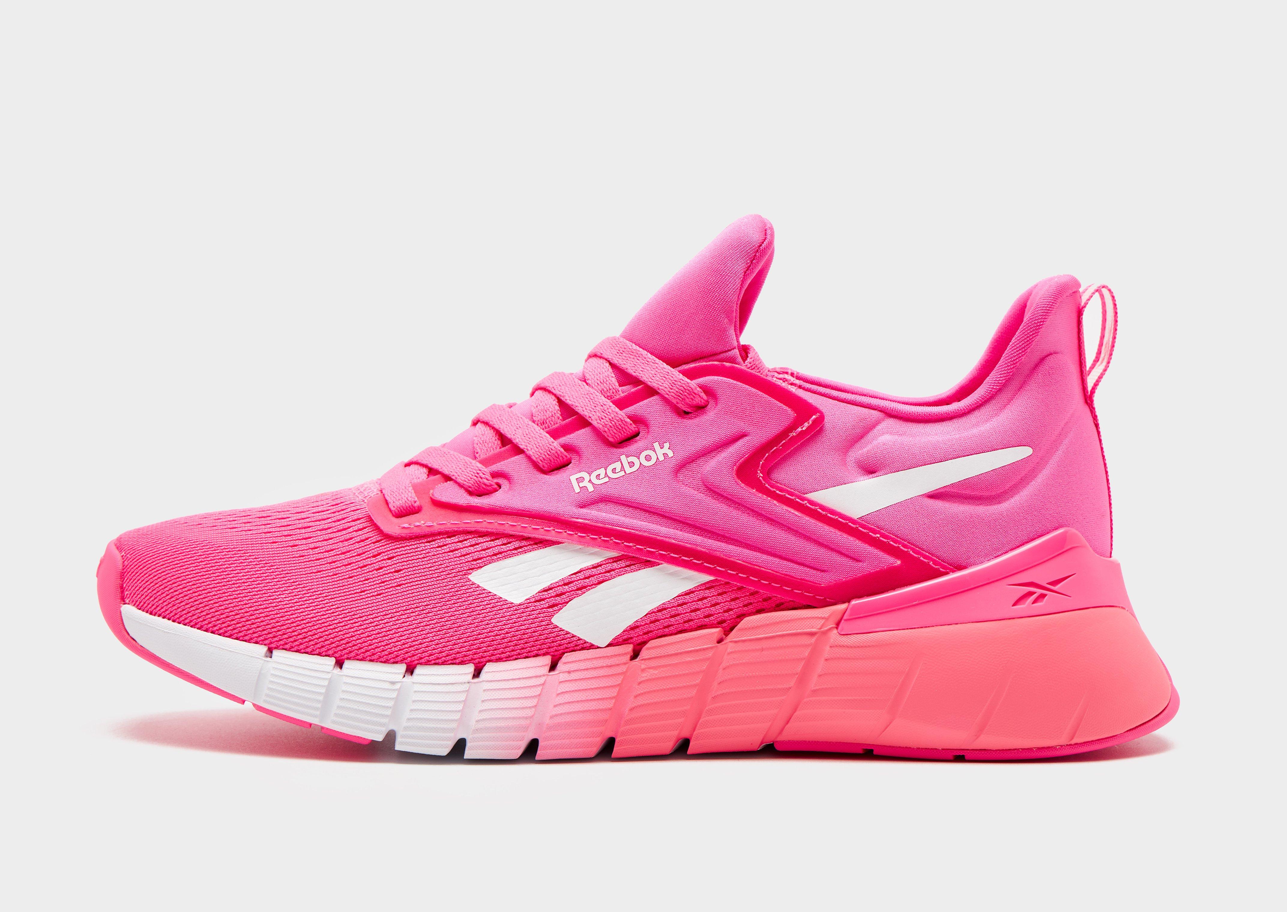 Take on your next gym sesh with these women's Nano Gym shoes from Reebok. Landing in a Pink colourway with White details, these workout shoes are made with a comfortable bootie construction to provide stability and support through your toughest sets. The upper is made from a lightweight, breathable mesh material, whilst the look and feel mimics a running shoe to allow for seamless cross training. Finished with signature Reebok branding to the sidewalls. Style Code: 100238432