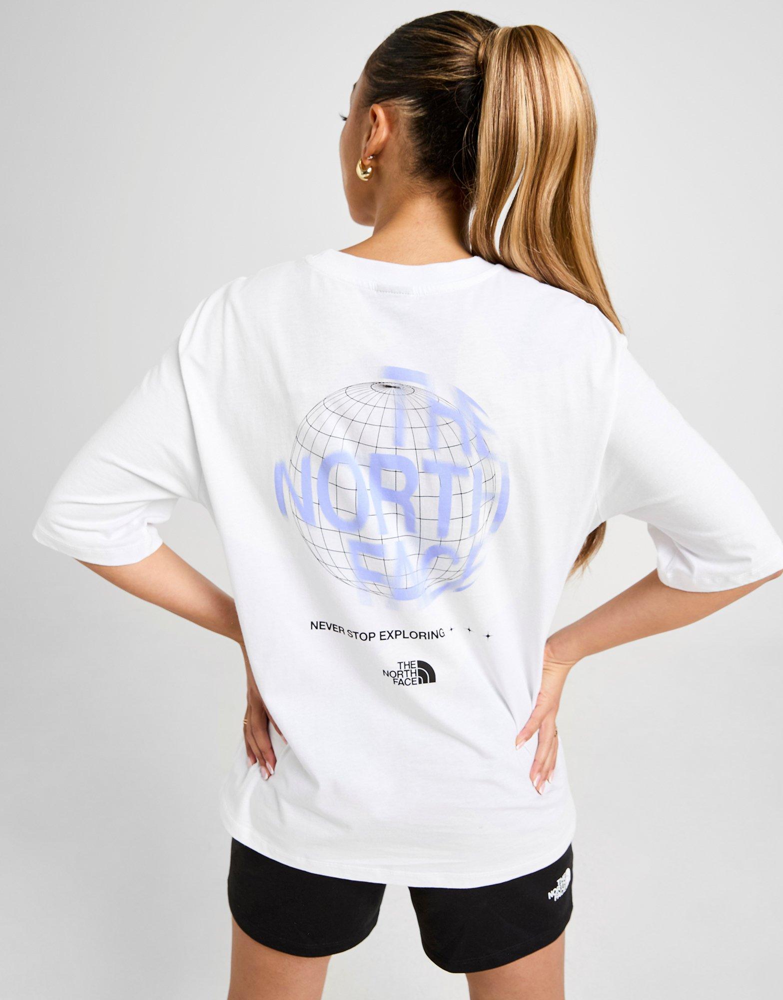 Upgrade your everyday 'fits with this women's Globe Graphic Boyfriend T-Shirt from The North Face. In a White colourway, this JD-exclusive tee is cut from soft, lightweight cotton to keep you comfy. It has a baggy, oversized fit for a laidback vibe, with a classic crew neckline and short, dropped-shoulder sleeves. Finished with a bold The North Face back graphic, and a signature logo up front. Machine washable. | Our model is 5'8" and wears a size S.