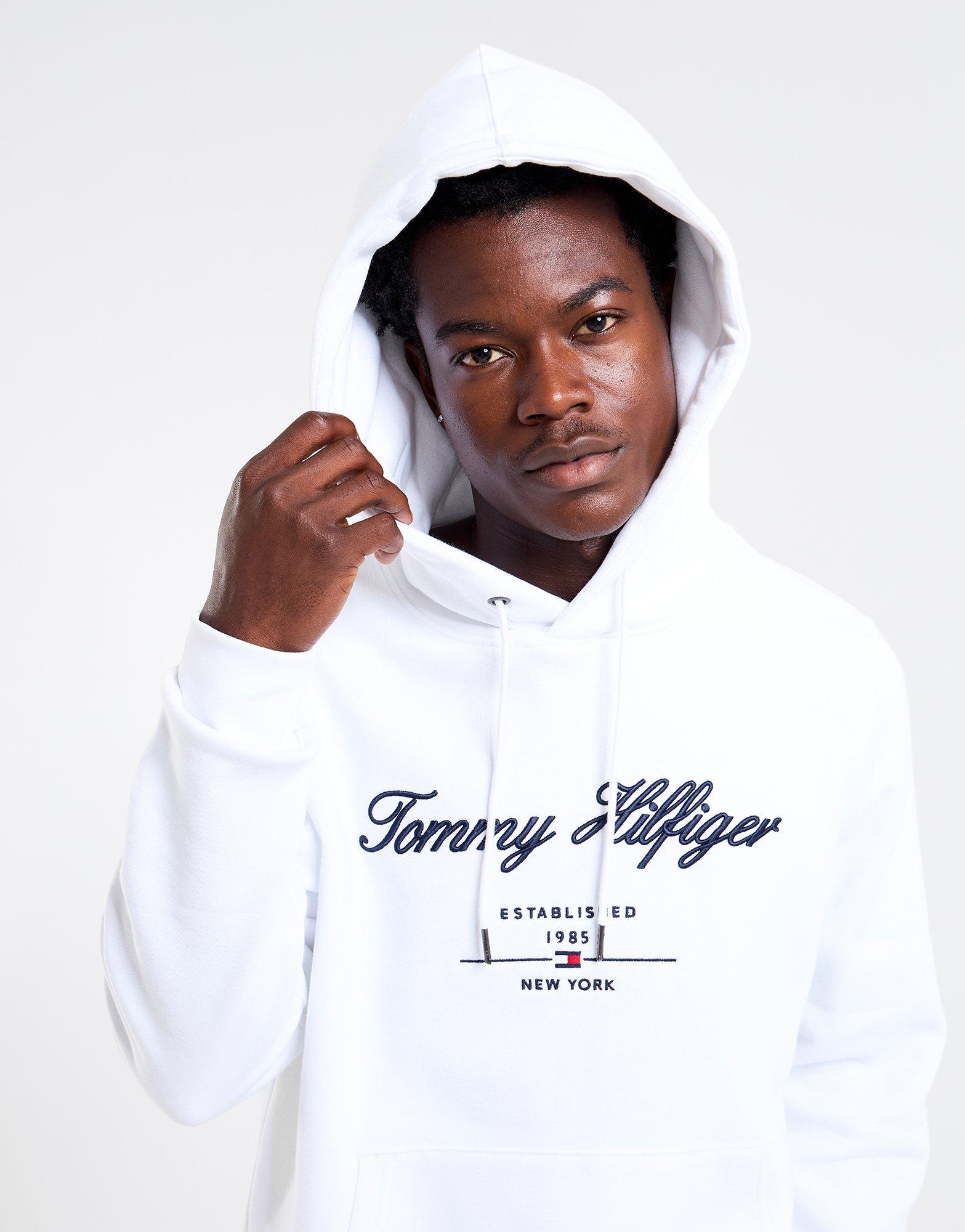Level up your look with this men's Script Hoodie from Tommy Hilfiger. Bringing premium heat since 1985, Tommy Hilfiger is a go-to for elevated essentials and weekend-ready style.