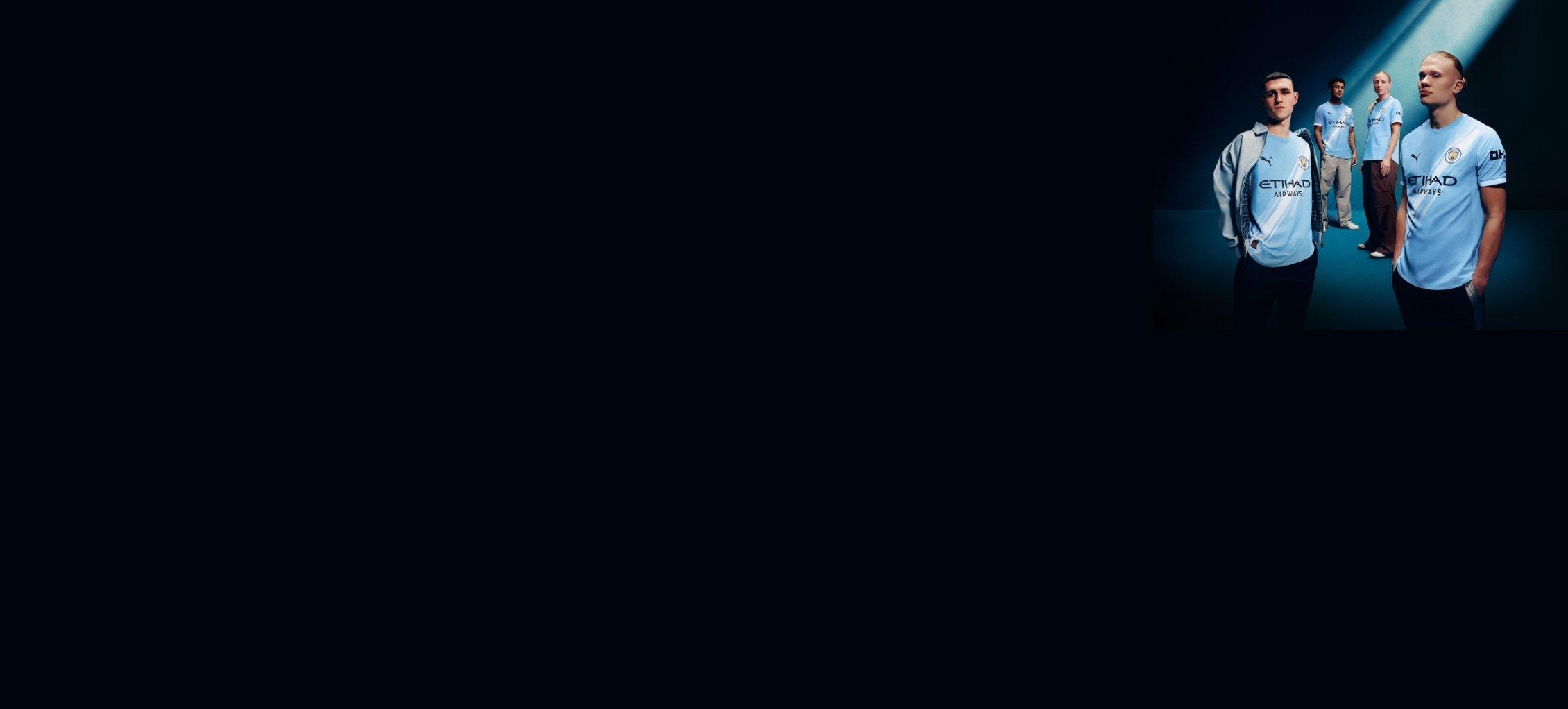 Take a look through Manchester City jerseys for the current season . Their home shirt is classic sky blue. It features a white V-neck collar, which PUMA has also adopted, drawing inspiration from a similar design used on a 03/04 home shirt .